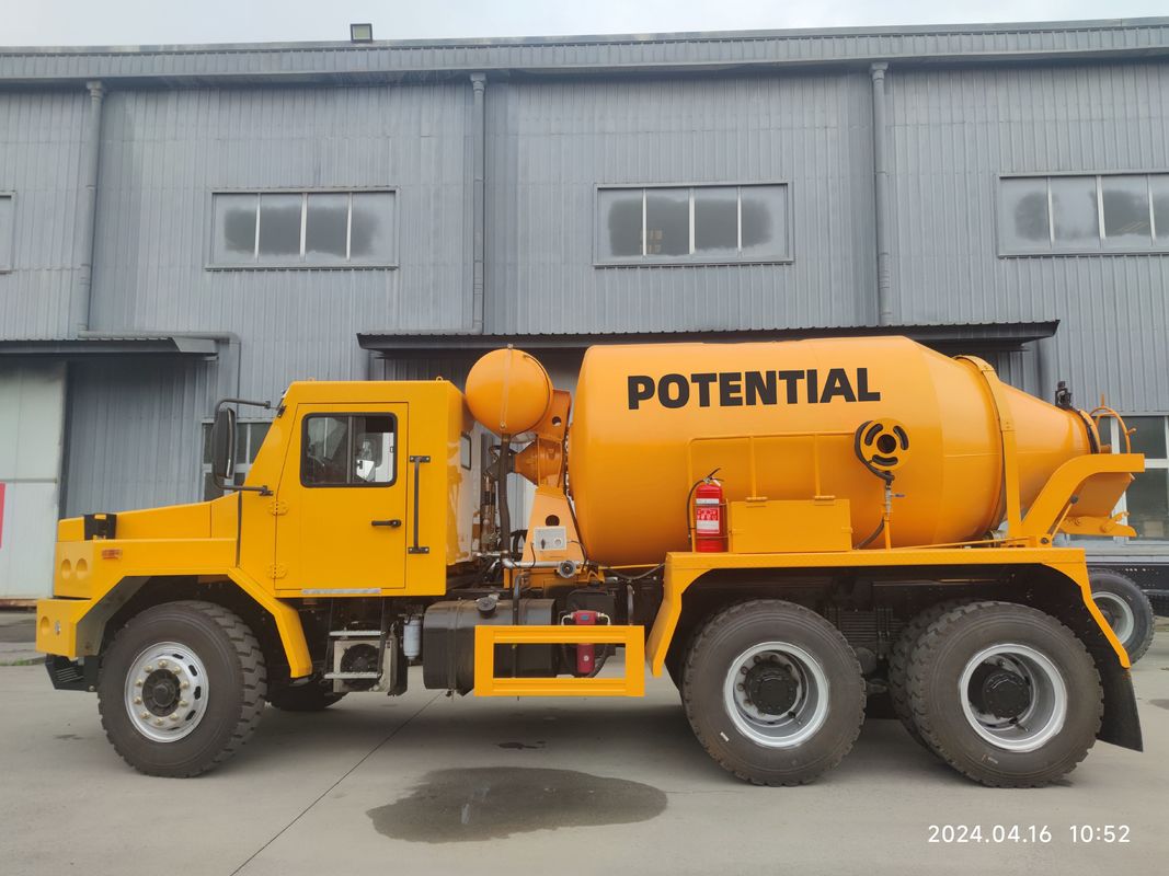 Firstly, mining mixer trucks can improve mining efficiency. It can quickly load and mix materials such as ore, slag, tailings, etc. inside the vehicle, ensuring the uniformity and quality of concrete and other mining materials. At the same time, mining mixer trucks have a large loading capacity and high-speed conveying ability, making the material handling process more efficient.